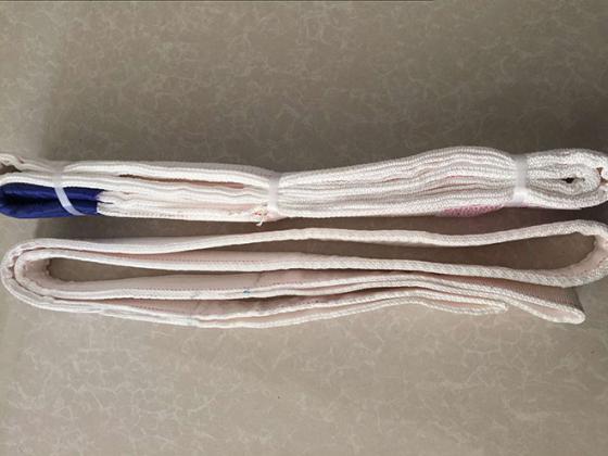白色吊裝帶是一種輕型吊裝帶,屬于雙扣扁平吊裝帶范疇,適用于工業(yè)領(lǐng)域內(nèi)較輕工件或物體的起吊場(chǎng)合中,作為車(chē)間內(nèi)所設(shè)置的起重機(jī)與工件或物體的連接吊裝索具。